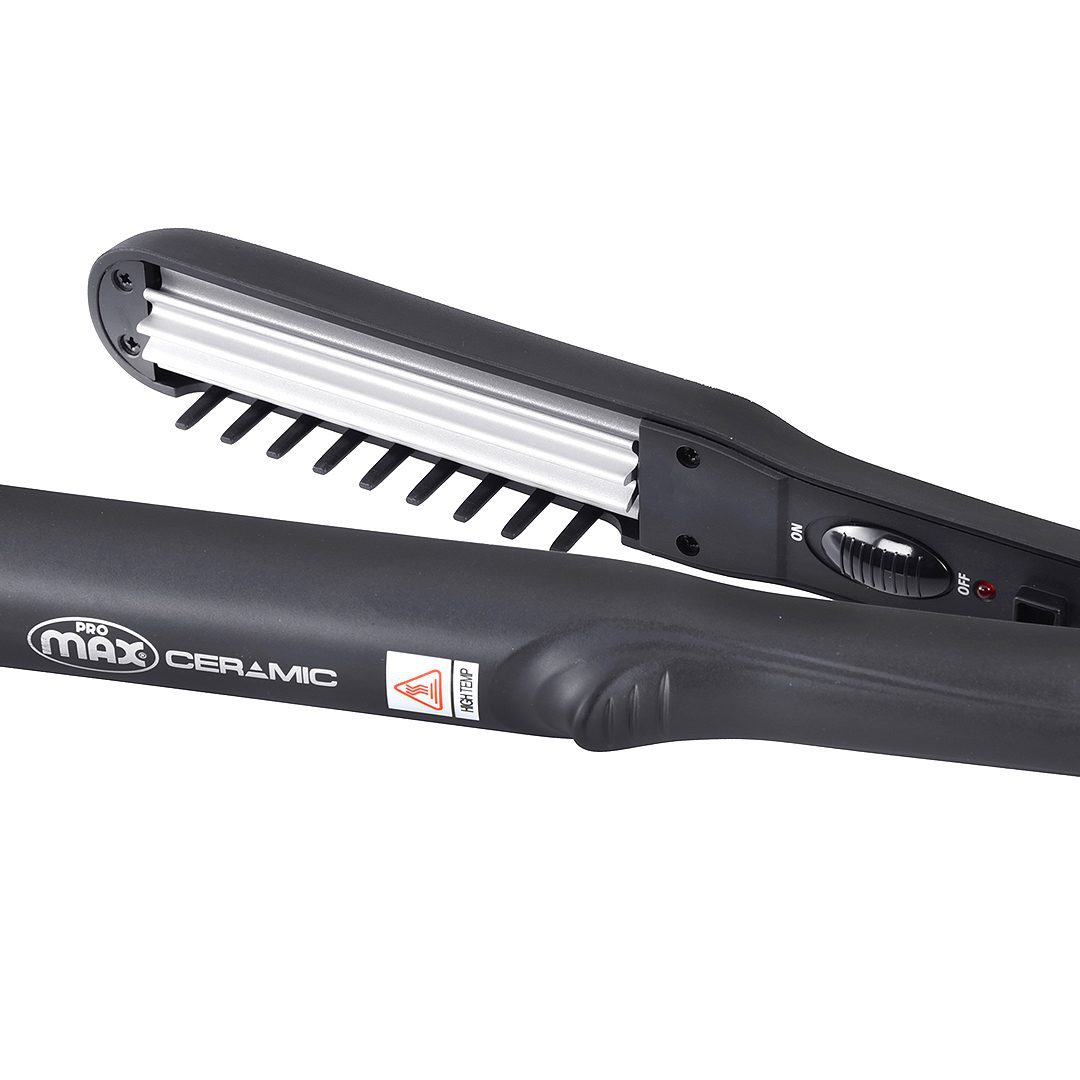 ویو سرامیک چرخشی پرومکس مدل 8311ez دستگاهی با طراحی جدید برای ایجاد ویو های ریز روی موها است. صفحات ویو کننده به شکلی طراحی شدهاند که بعد از بستن صفحات شانهها در هم فرو میروند و شکل موجدار صفحات روی مو ایجاد میشود. اما نکتهی قابلتوجه در این طراحی اهرم چرخانی است که در انتهای یکی از صفحات کار گذاشته شده است. با چرخاندن این اهرم صفحهی موجدار نیز میچرخد. به کمک این قابلیت میتوان بهراحتی موها را بین صفحات حرکت داد و موجهای یکنواختی را روی مو ایجاد کرد. روی صفحات دستگاه توسط سرامیک تورمالین پوشش داده شده است. سرامیک پخش دمای یکنواختی دارد و در تماس با مو آسیبی به ساقهی مو وارد نمیکند. تورمالین هم منبع طبیعی یونهای منفی است. یونهای آزادشده توسط تورمالین الکتریسیتهی ساکن روی مو را خنثی کرده و از وز شدگی موها کم میکند. علاوه بر این باعث میشود موها حالت نرمتر و درخشانتری داشته باشند. دکمهی روشن/خاموش دستگاه بین دو اهرم قرار دارد و در کنار آن نشانگر روشن بودن دستگاه دیده میشود. بعد از روشن کردن ویو کننده، دمای صفحات در مدتزمان 60 ثانیه به دمای 210 درجهی سانتیگراد میرسند. سیم برق دستگاه 3 متر طول داشته و در محل اتصال به بدنه حالت چرخشی دارد. قابلیت چرخش سیم از گره خوردن سیم جلوگیری کرده و کار کردن با دستگاه را آسانتر میکند. در انتهای سیم حلقهای برای آویزان کردن دستگاه وجود دارد. بهطور خلاصه دستگاه ویو پرومکس مدل 8311ez دارای صفحات چرخان موجدار، گرم شدن سریع تا دمای 210 درجهی سانتیگراد، پوشش سرامیک تورمالین روی صفحات با قابلیت تولید یون و سیم بلند چرخشی بوده و برای ایجاد موجهای ریز و منظم در موها مناسب است.