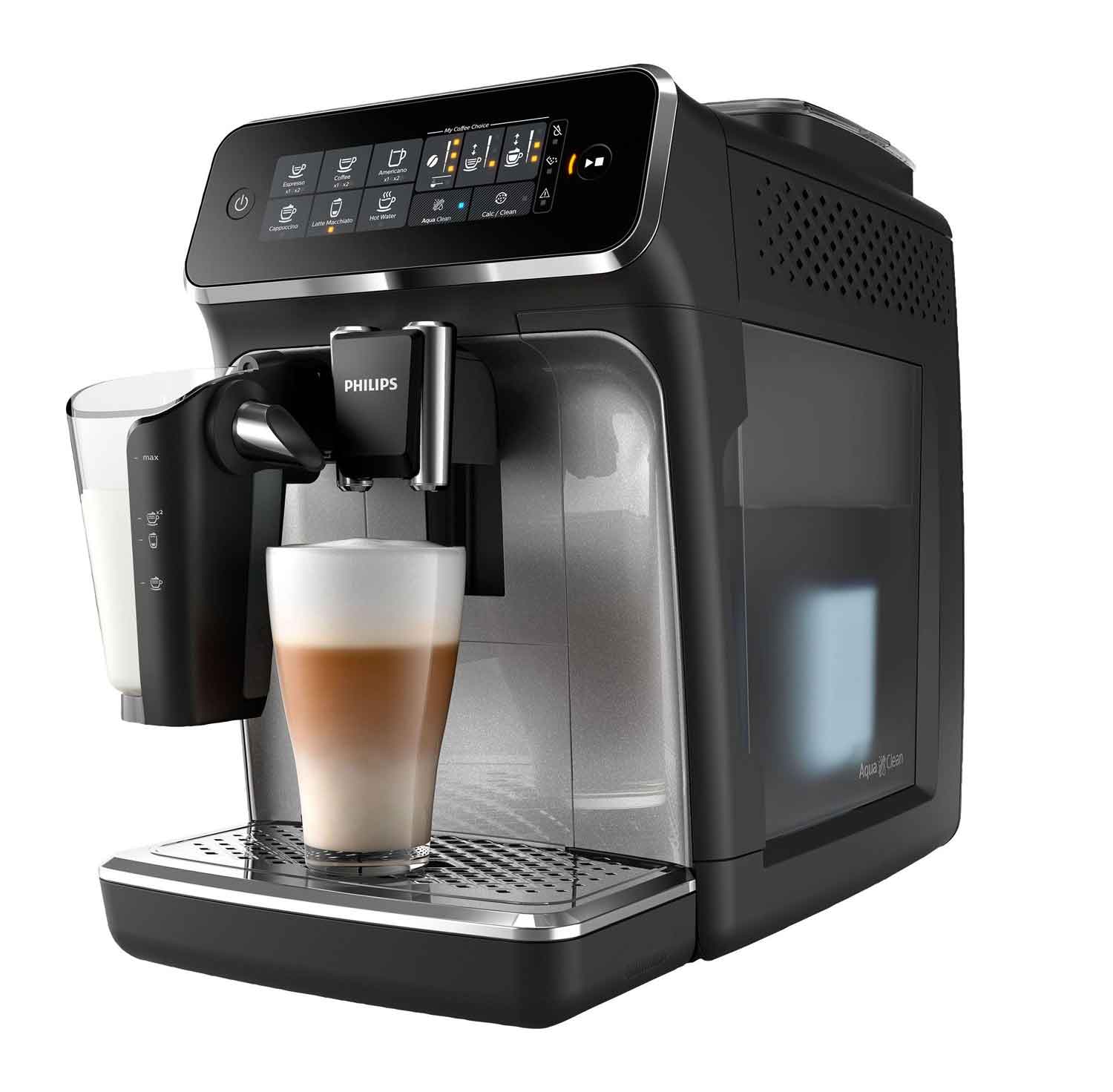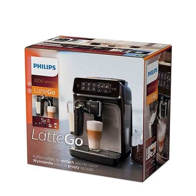 اسپرسو ساز فیلیپس سری 3200 مدل EP3246/70 حجم مخزن آب: 1.8 لیتر فشار بخار: 15 بار توان مصرفی: 1500 وات جنس بدنه: پلاستیک 3 حالت دما دارای سینی چکه گیر فیلتر AquaClean سیستم Aroma Ectract تنظیم آسیاب در 12 حالت مخزن آسیاب 275 گرم تنظیم میزان غلظت قهوه قابلیت تولید کف شیر قابلیت تنظیم میزان کف شیر ظرفیت مخزن شیر: 0.26 لیتر قابلیت استفاده از:دانه قهوه، پودر قهوه تعداد نازل قهوه: دو عدد نمایشگر لمسی قابلیت شخصی سازی منو سیستم گرم کردن فنجان سیستم خاموشی خودکار سیستم رسوبزدایی خودکار تنظیم میزان غلظت قهوه با استفاده از گرماژ قهوه قابلیت شستشوی خودکار نازل قهوه تهیه نوشیدنیهای: آب جوش، اسپرسو، کافه لاته، موکا، کاپوچینو، لانگو، امریکانو، شیر گرم، فلت وایت